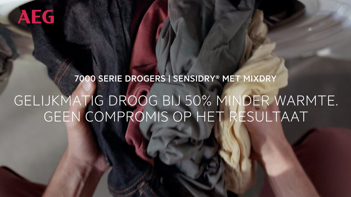 SensiDryĀ®-technologie met warmtepompsysteem droogt door de precieze sensoren uw kleding op slechts de helft van de temperatuur