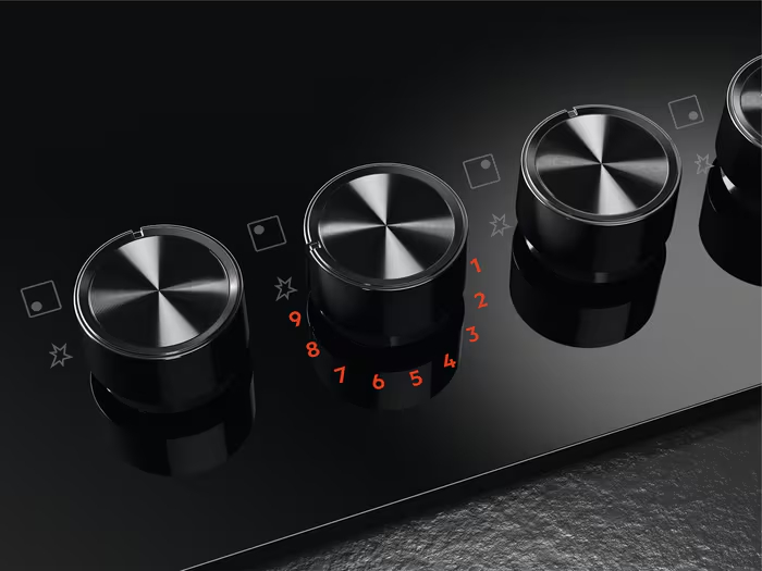 8000 / FlameLight / 60 cm / Gas / 4 branders / VerticalFlame / StepPower / Gas op Glas