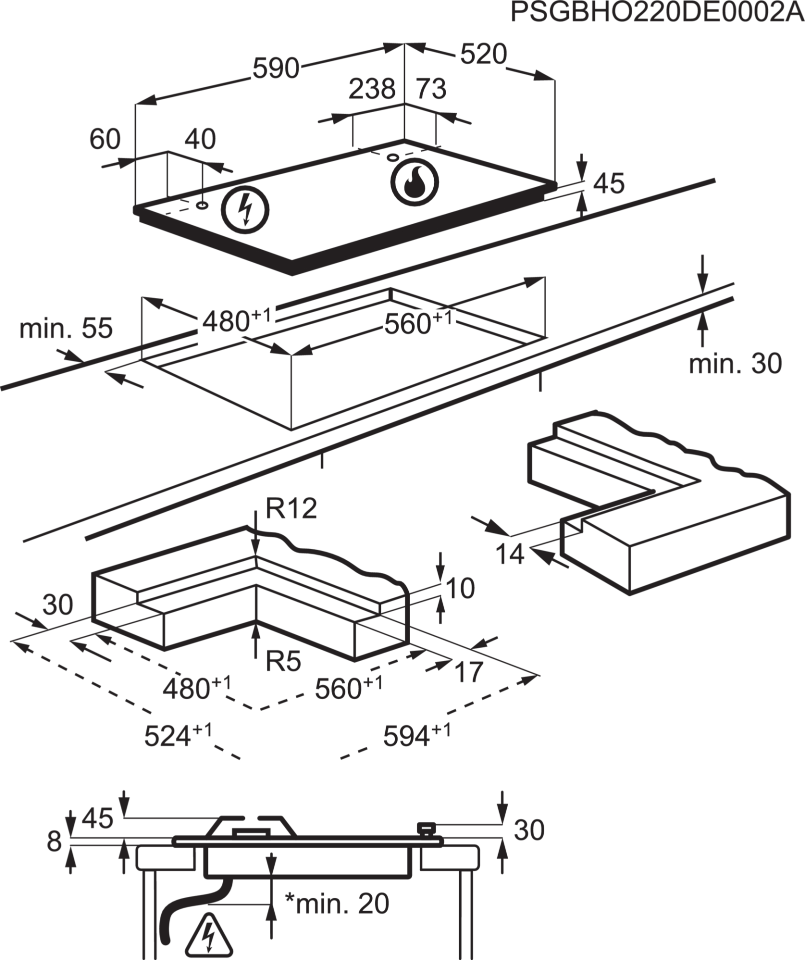 8000 Zwart 590 mm breed 4 kookzone(s) Gietijzer Geen randafwerking€899.99