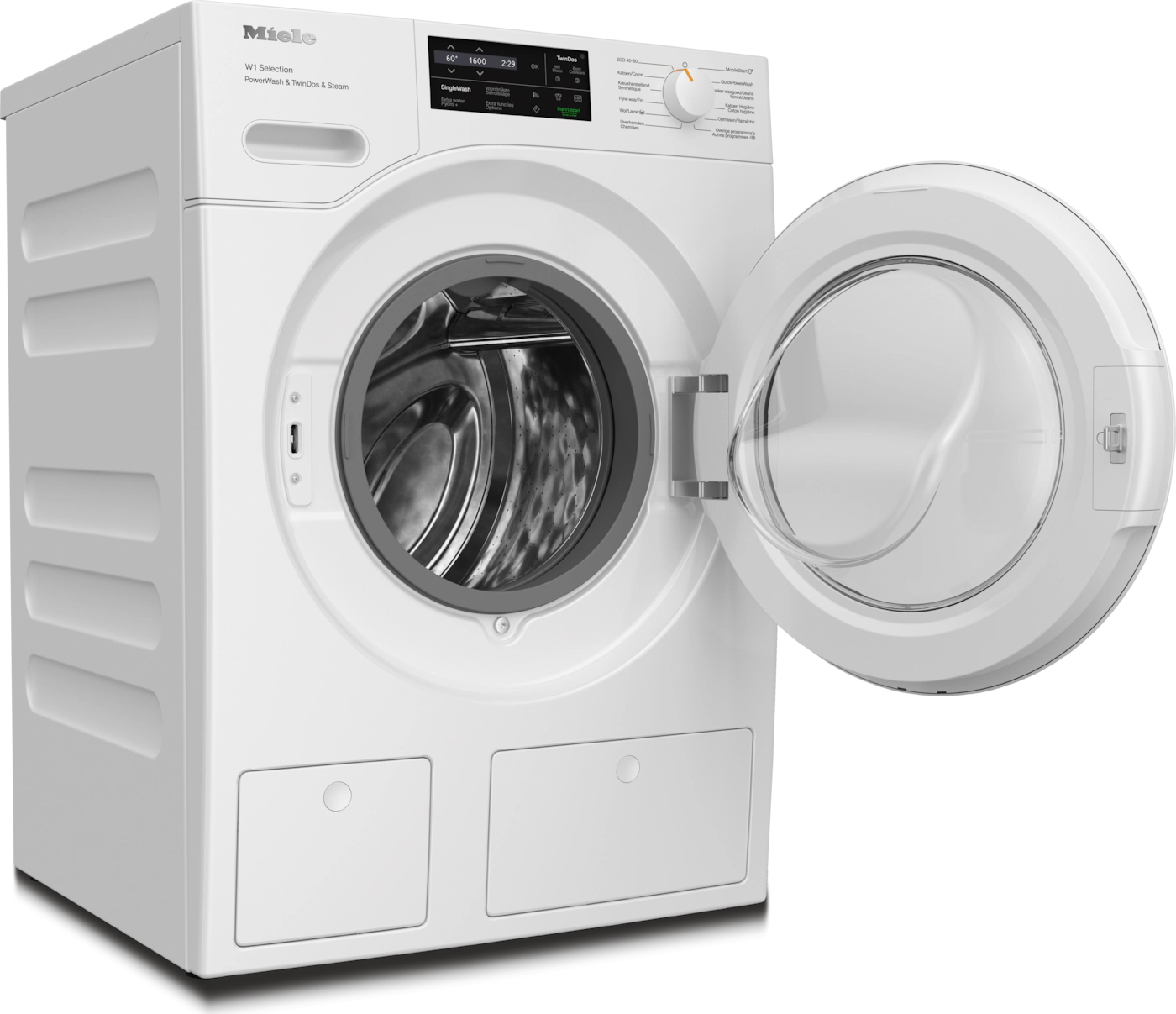Wasmachine ; Lotuswit ; Selection White Edition ; A-20% ; 9kg ; 9kg ; 1600tpm ; Comfort sensor ; PowerWash & TwinDos ; Vlekkenoptie ; Capdosing ; SteamCare ; Schuin paneel ; 68dB ; Trommelverlichting ;