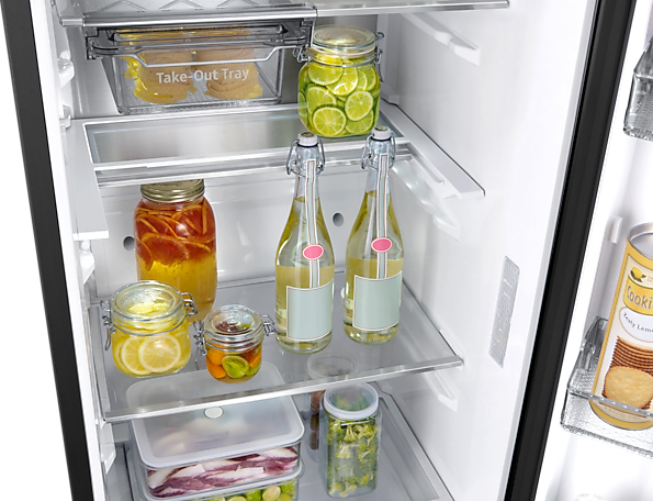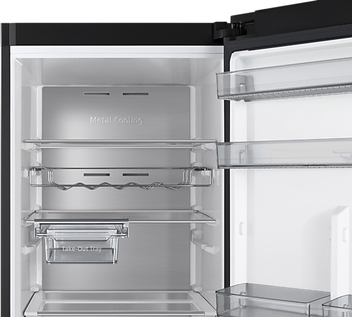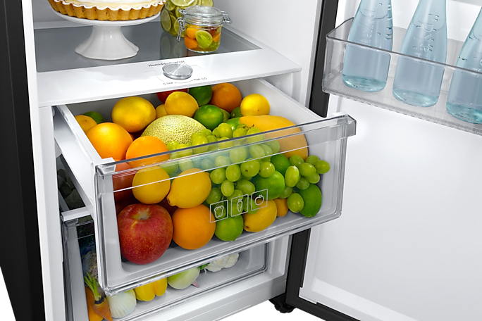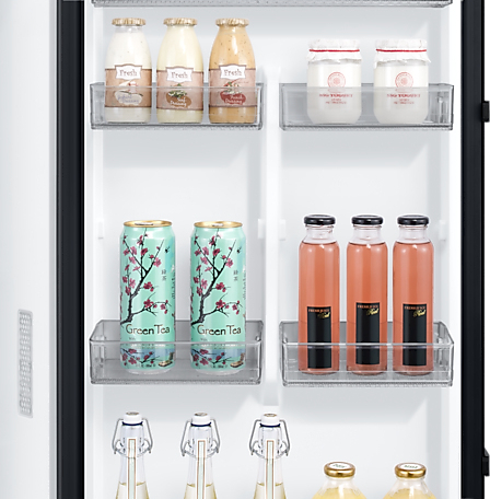 1 deur koelkast, E, 387L, 185,3cm, All Around Cooling, Extern display, Easy open handgreep, Metal Cooling, Opvouwbare plank, Uitneembare lade, Flessenrek, Black StainlessSteel, AI Energy Mode