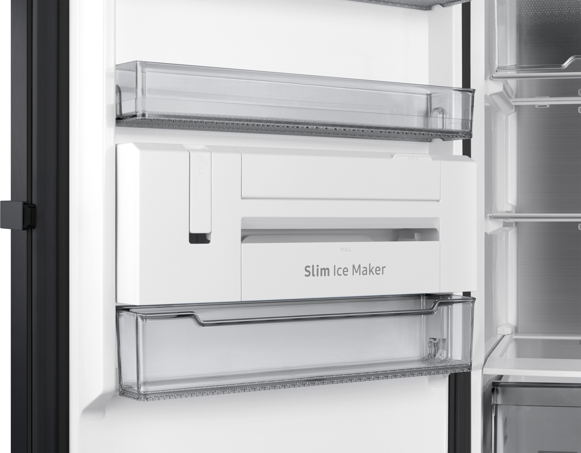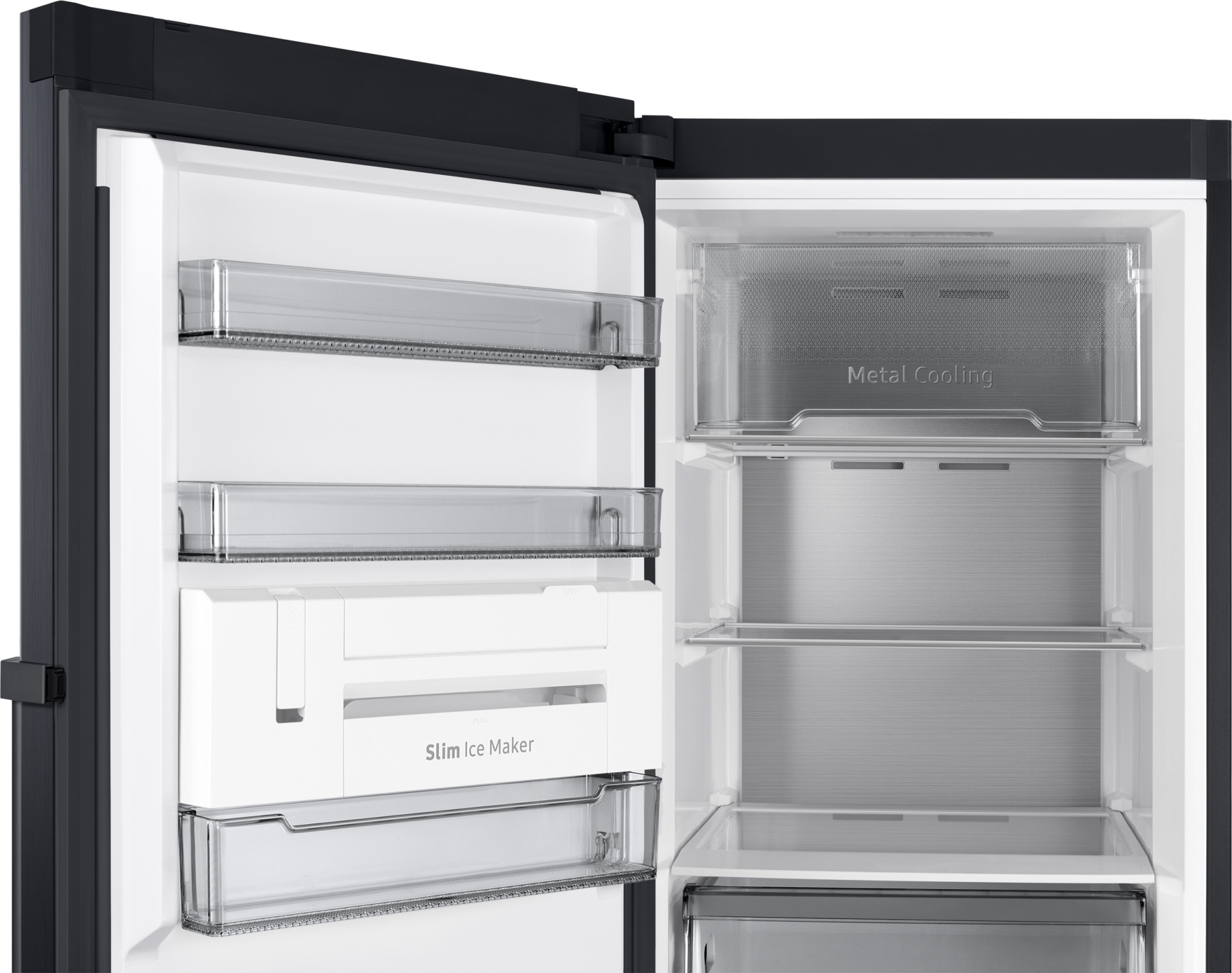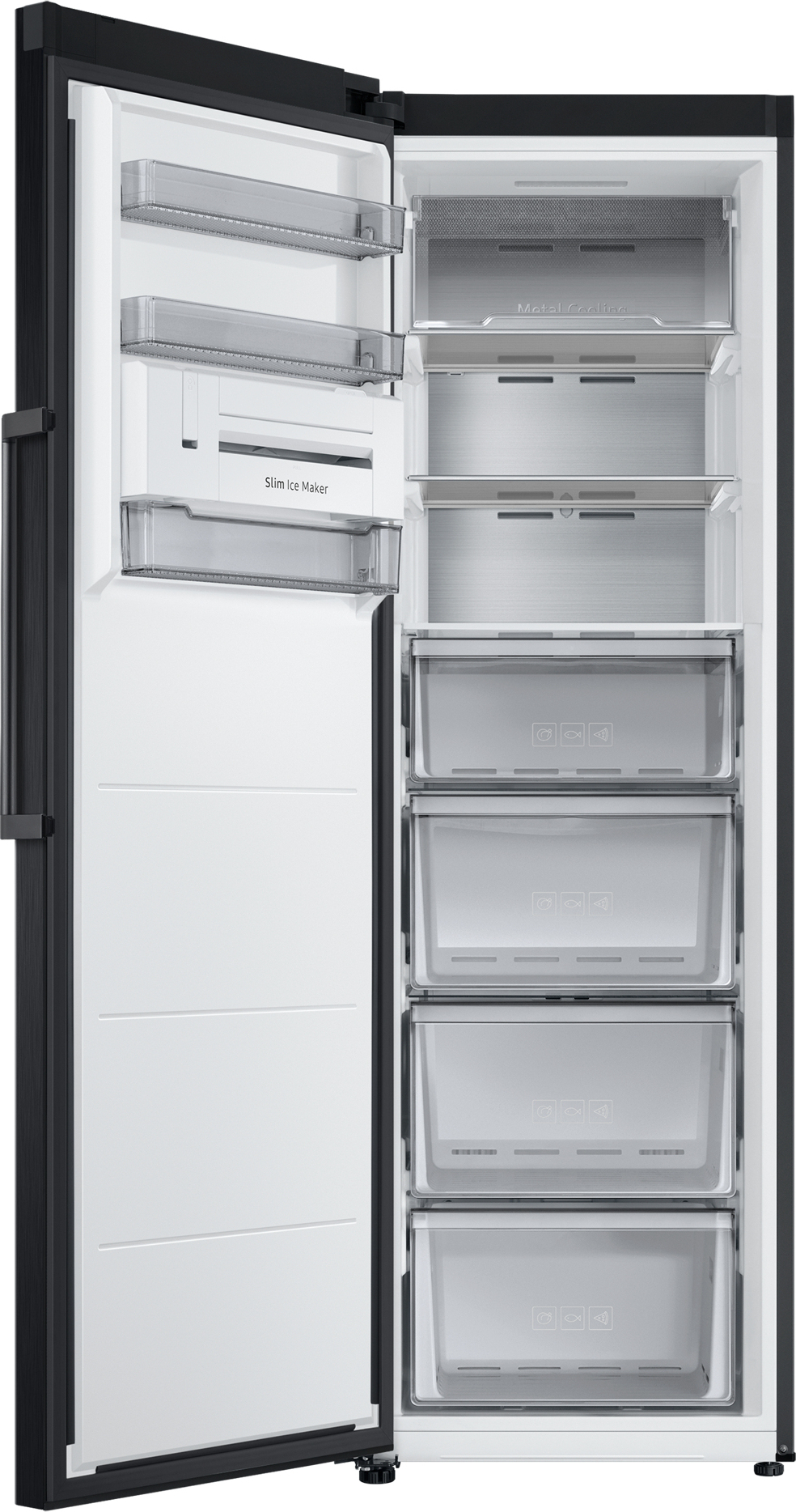 1 deur vriezer, E, 323L, 185,3cm, All Around Cooling, Extern display, Easy open handgreep, Metal Cooling, Slim Icemaker, Black StainlessSteel, AI Energy Mode