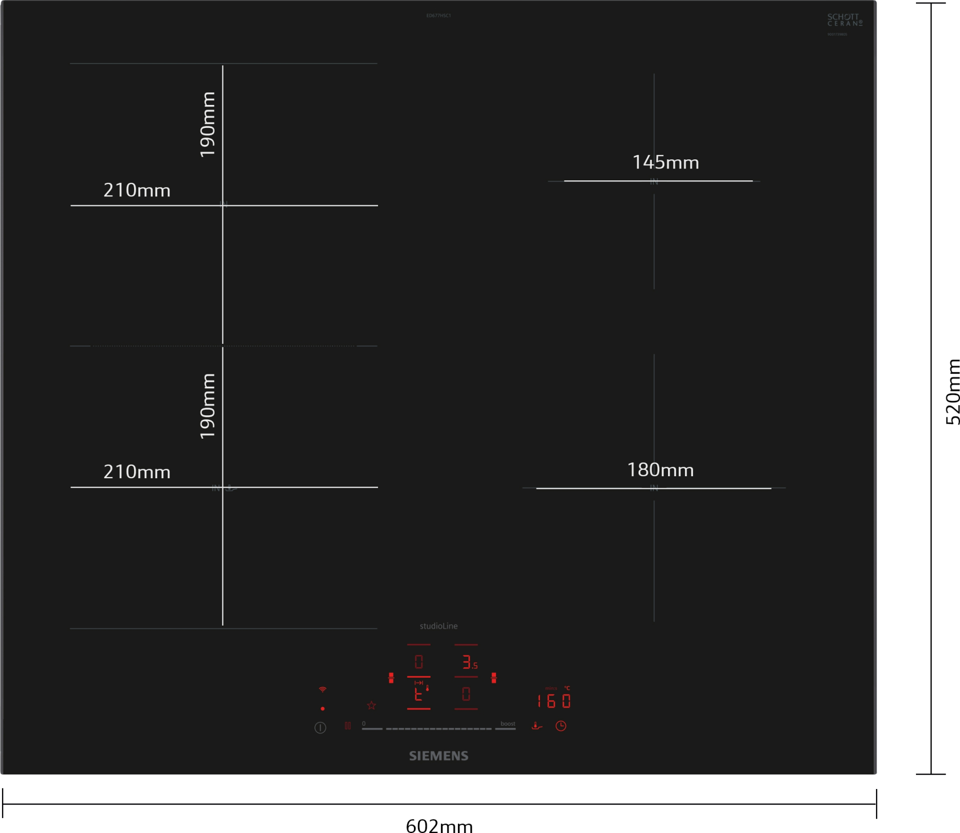 IQ500 Zwart 602 mm breed 4 kookzone(s) Metalen zijprofielen€1,039.00