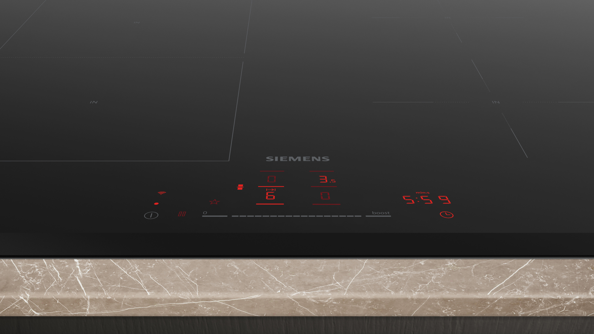 Kookplaat IQ500 Inductie 70 cm, combiInduction, 4 zones, 1 combiZone, touchSlider met 17 vermogensstanden, powerBoost alle zones, 2 timers (alternative), Home Connect - cookConnect, intelligent hood automatic, U-facet, 6.900 W U-facet