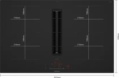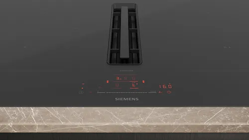 Kookplaat IQ500 Inductie-geïntegreerde ventilatie 80 cm, combiInduction, 4 zones, 2 combiZones, touchSlider met 17 vermogensstanden, fryingSensor Pro, Matt Edition, powerBoost alle zones, 2 timers (alternative), Home Connect - cookConnect, iQdrive, 9 standen + 2 intensief, 500 / 622 m3/h, 69 dB, comfort profiel blackSteel, 7.400 W, klasse B B