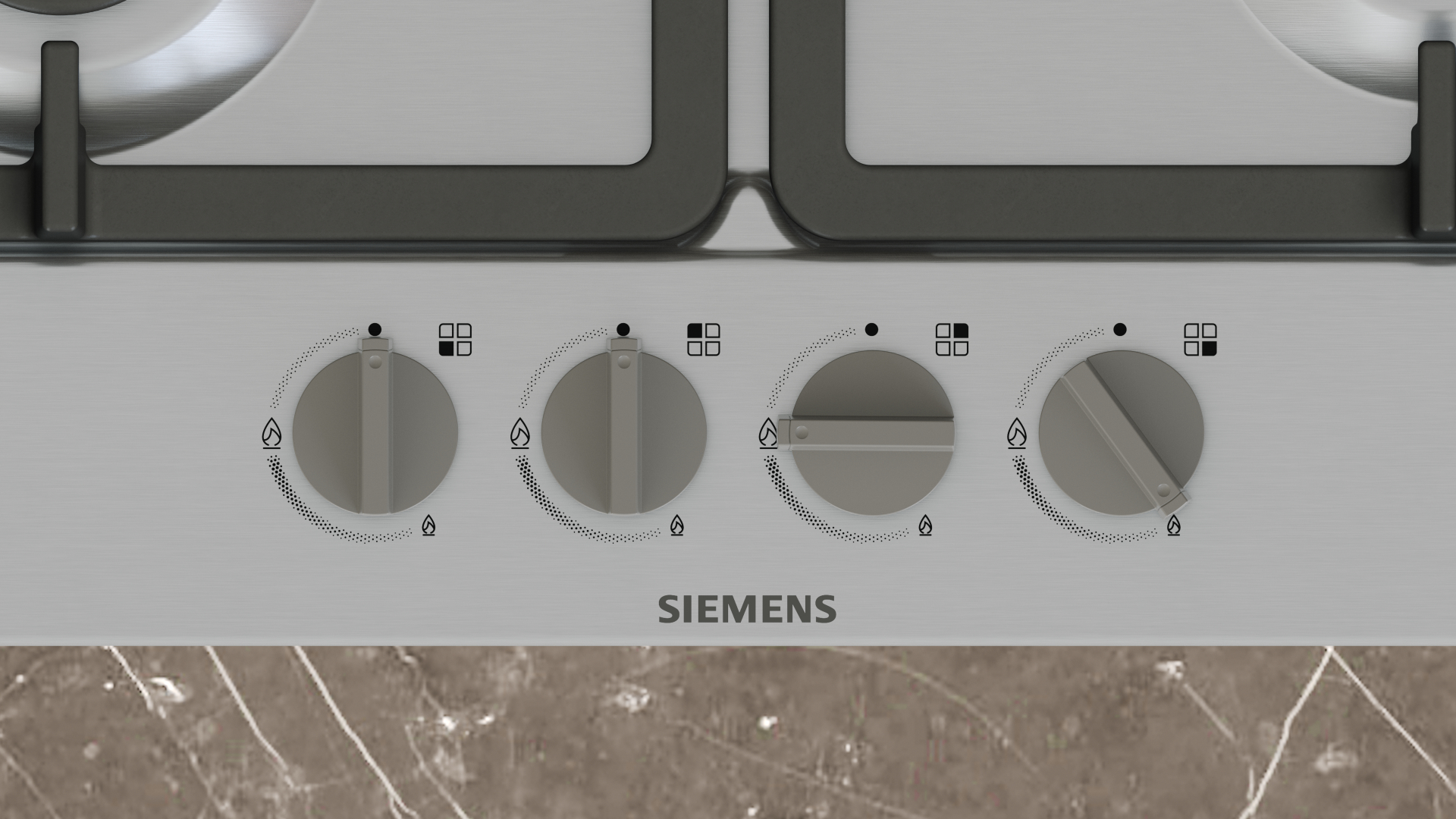 Kookplaat IQ300 Gas 60 cm, roestvrij staal, 4 branders, zwaardknoppen, gietijzeren pannendragers met rubberen voetjes, geschikt voor de vaatwasser, Inox