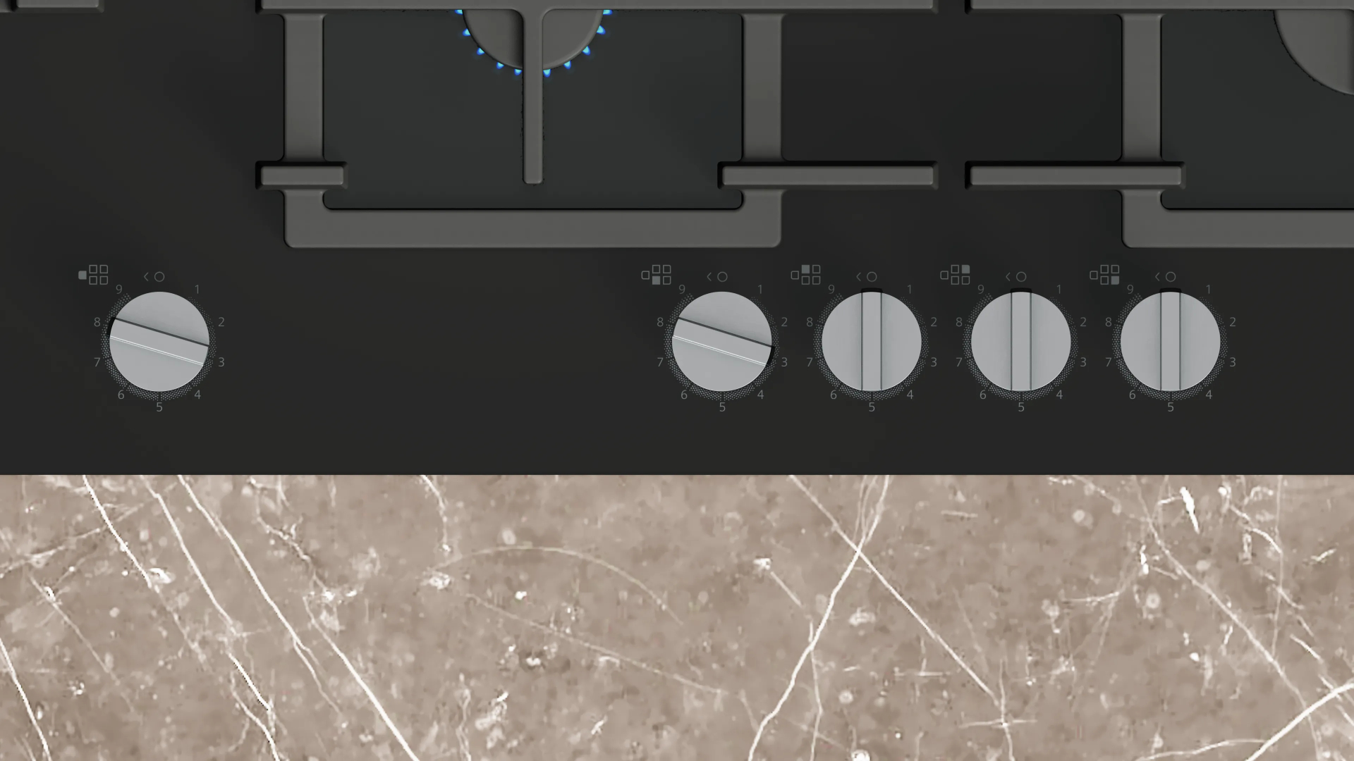 Kookplaat IQ500 Gas 90 cm, hardglas, 5 branders, wok links 4,0 kW, afneembare zwaardknoppen, stepFlame® Technology, mono gietijzeren pannendragers met rubberen voetjes, geschikt voor de vaatwasser, , zwart, randloos Zwart