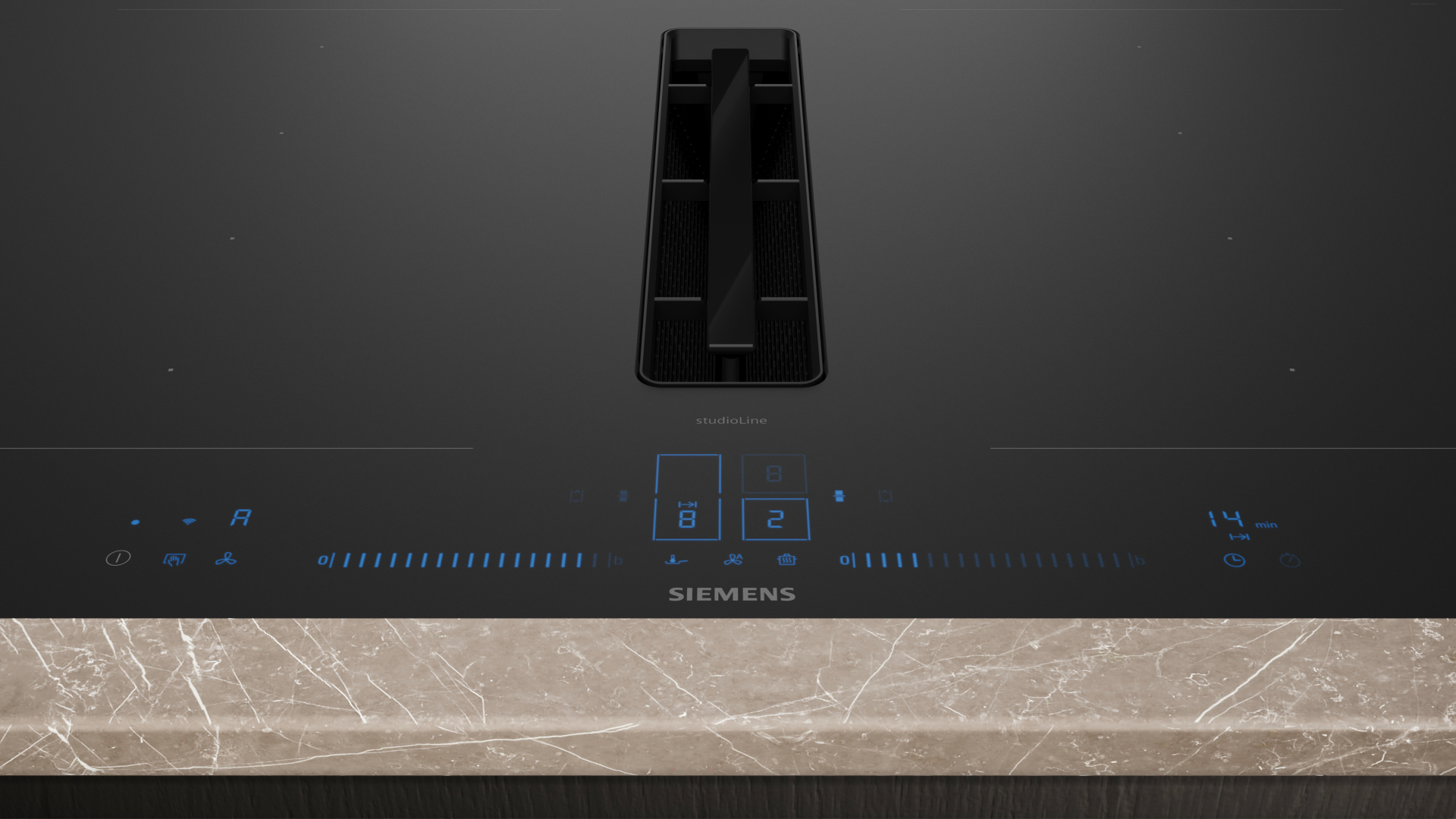 Kookplaat IQ700 Inductie-geïntegreerde ventilatie 80 cm, flexInd., 4 zones, 2 flex., Blue dual lightSlider, fryingSens., cS. ready, BLDC, 500/622m³/u, 17+2 int.st., 69dB, climateControl sens., Matt Edition B