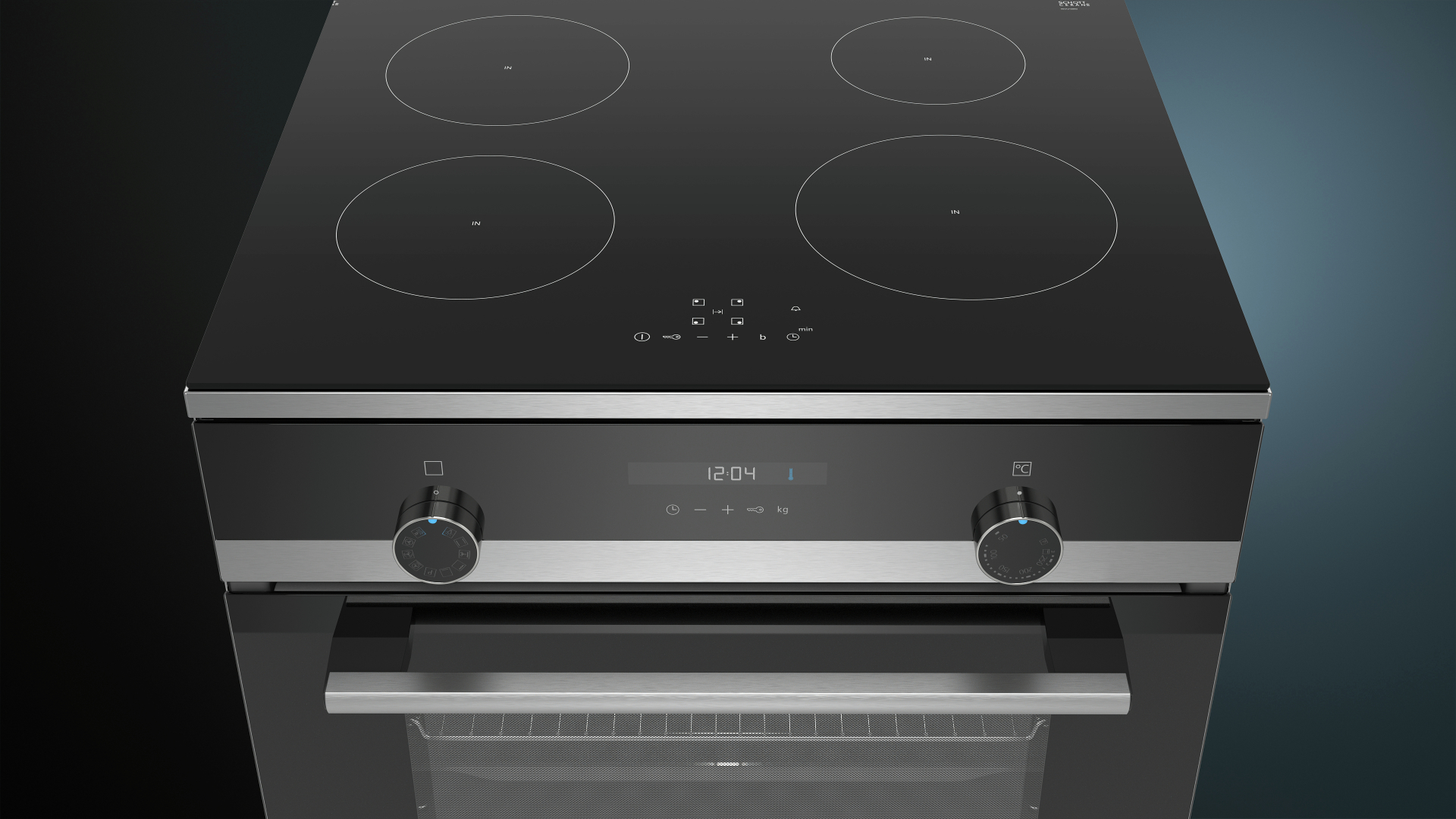 Fornuis IQ500 Elektrisch Inductie, Label A, 7 verw.wijzen, 66 l, humidClean, wit display, cookControl10, roastingSensor, softClose, zwart Inox A