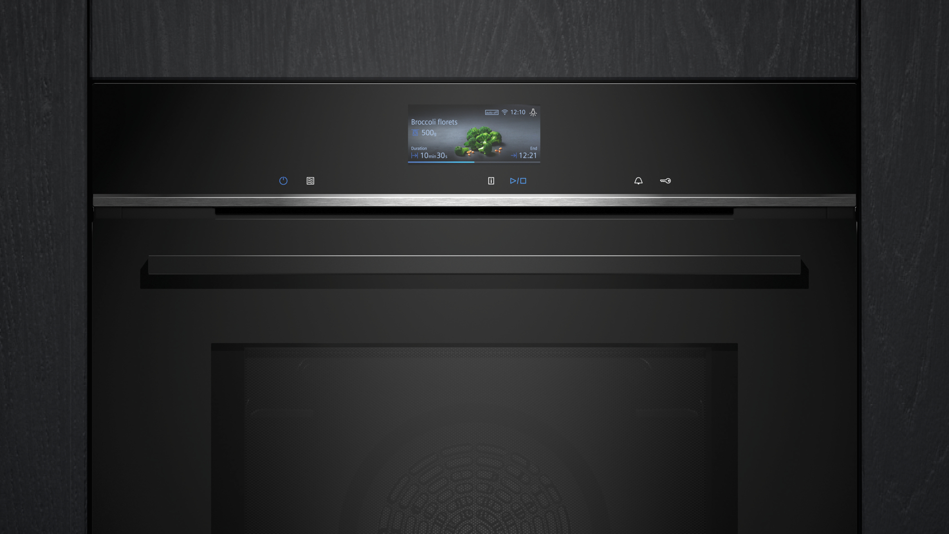 Oven IQ700 Combi-microgolf 60 cm, 19 verw.wijzen, 800 W (grill 2,80kW), ecoClean, Home Connect, TFT-Touchdisplay Plus, telesc.rail 1niv., softMove, zwart Zwart