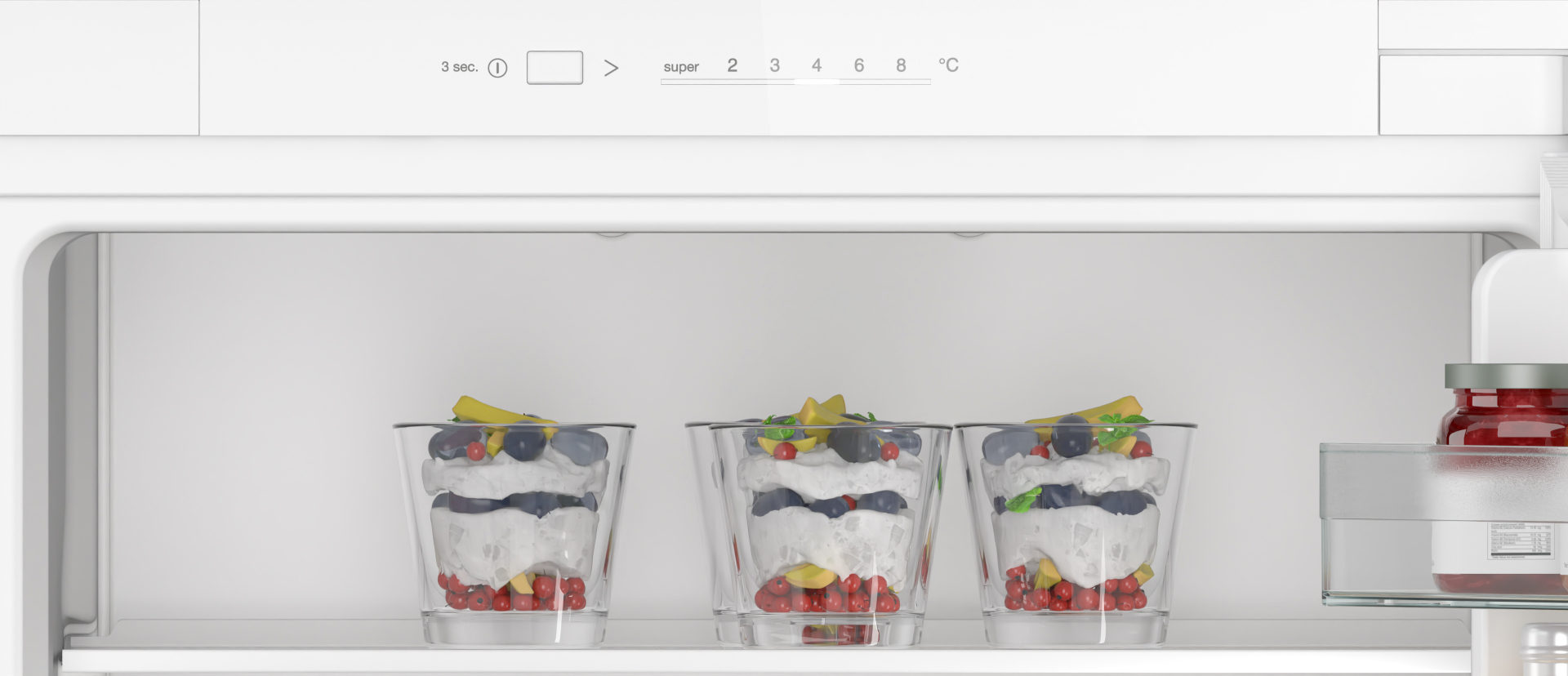 Koelkast - integreerbaar IQ100 Eéndeurskoelkast - 102,5 cm Klasse E, 35 dB, freshBox, LED display, LED verlichting, 165 l, scharnieren met glijtechniek, hoogte 102,10 cm E