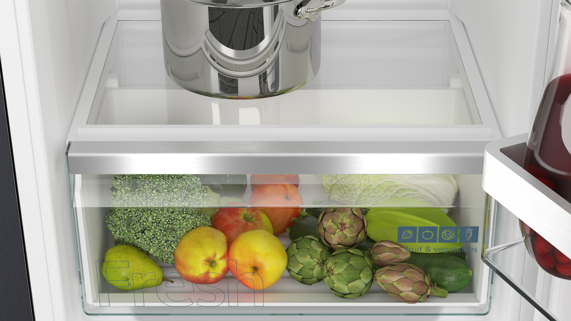 Koelkast - integreerbaar IQ300 Eéndeurskoelkast - 102,5 cm Klasse E, 35 dB, freshBox, LED display, LED verlichting, verchroomd flessenrek, 165 l, vlakscharnieren, hoogte 102,10 cm E