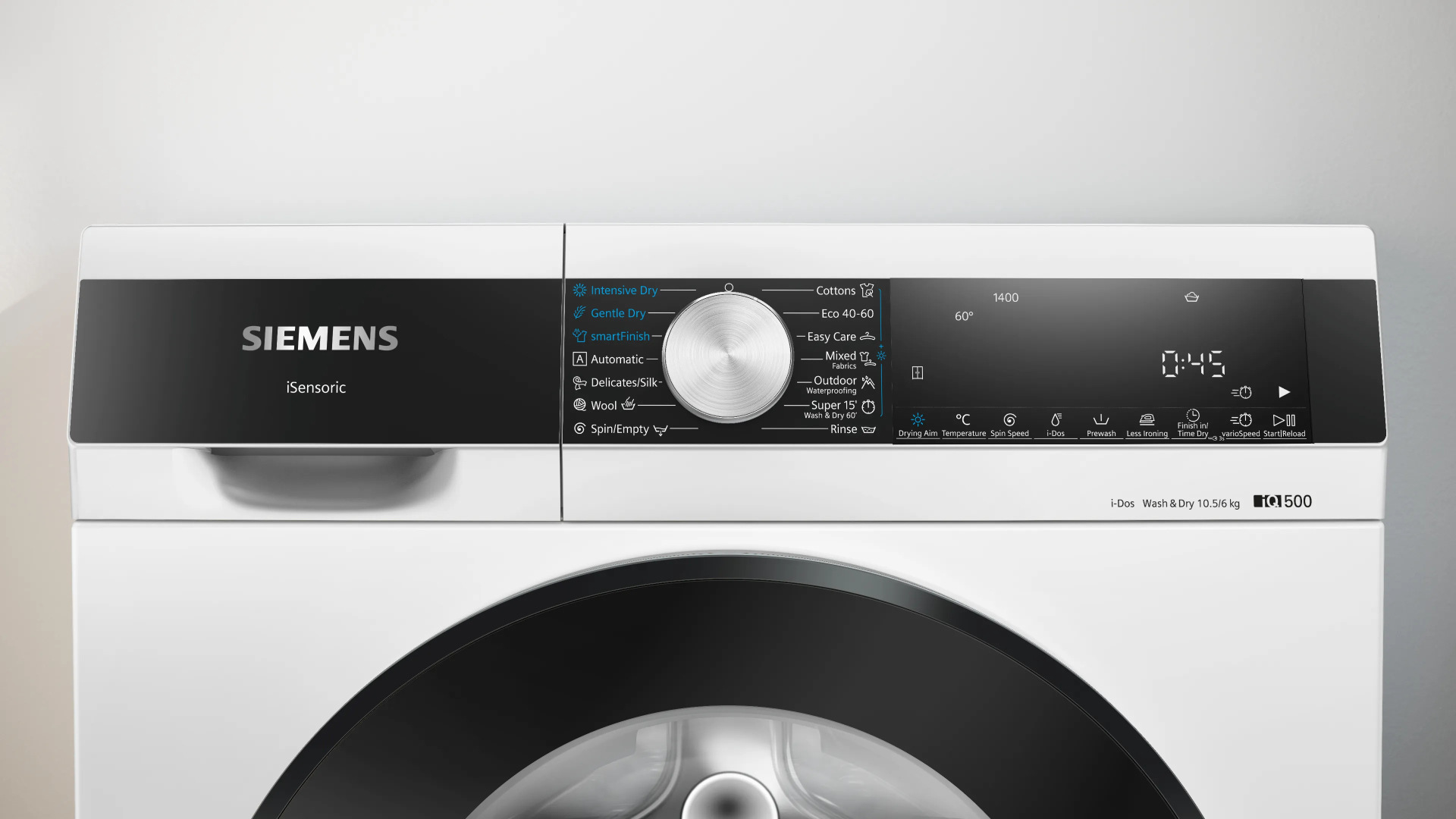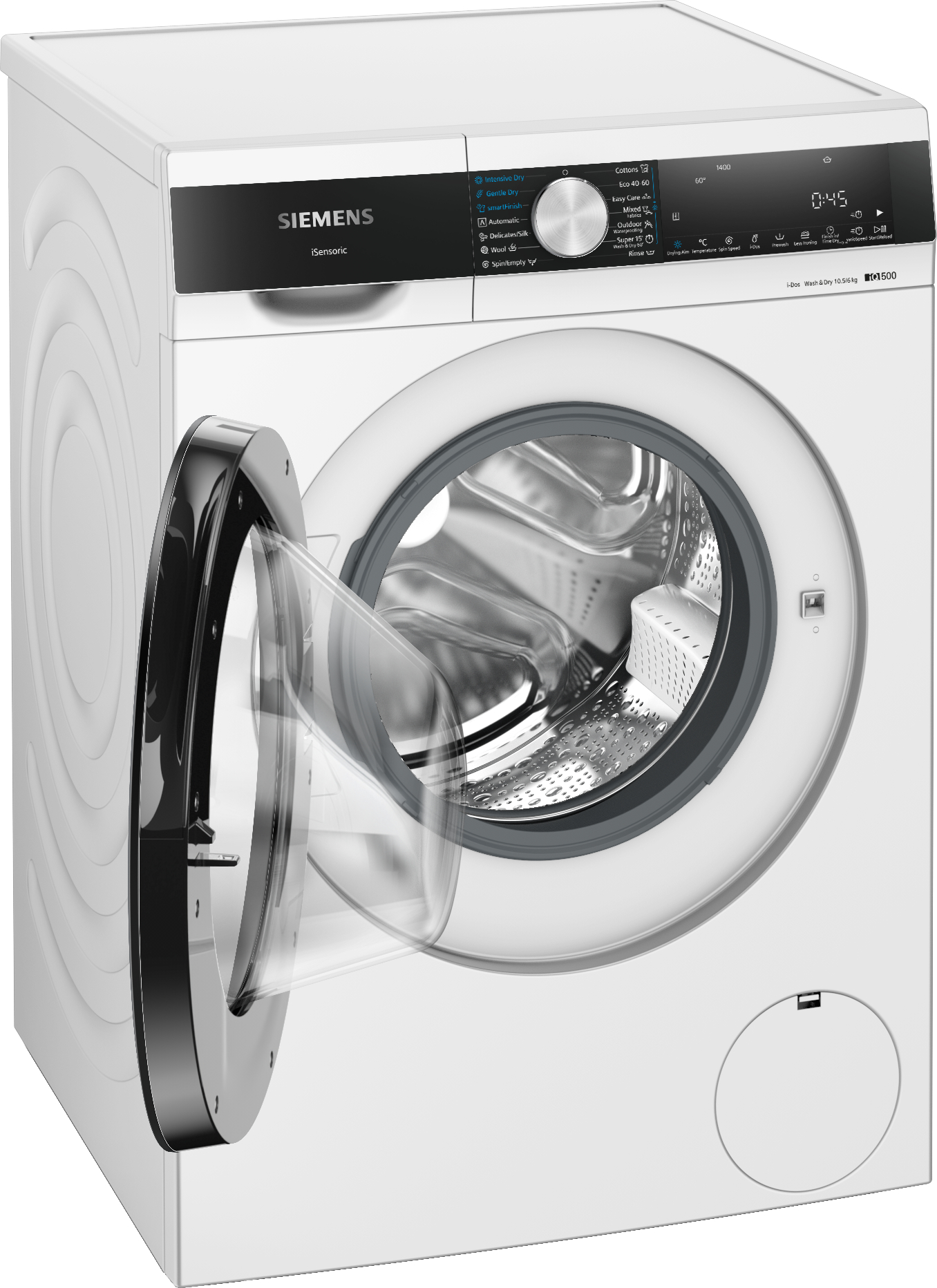 Was-/droogcombinatie IQ500 Vrijstaand Klasse D, Klasse A, 6,0 kg, 10,5 kg, 1.400 tr/min, i-Dos, Antivlekken, powerSpeed, Big LED touch buttons, waveDrum, Aquastop, 70 dB, Full/MK, black-black Wit D/A