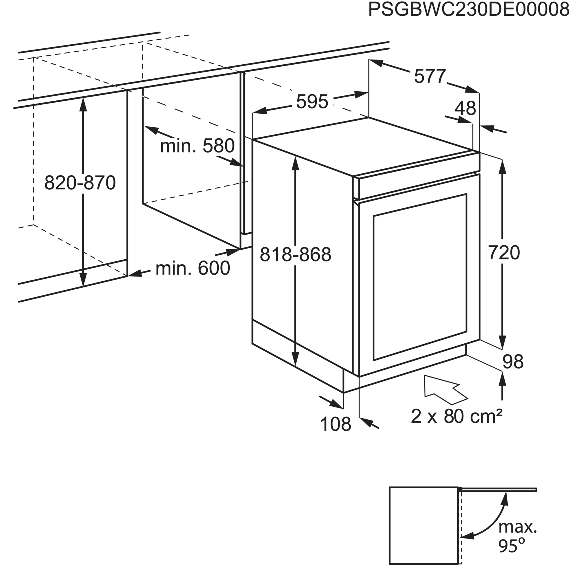 820 mm inbouwhoogte